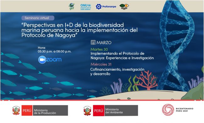 El Ministerio de la Producción (Produce), a través del viceministerio de Pesca y Acuicultura, realizó el seminario virtual “Acceso a recursos genéticos y derivados de especies hidrobiológicas”, a fin de difundir información sobre cofinanciamiento y permisos para la investigación de recursos pesqueros. Con el apoyo del Proyecto GEF-ABS-Nagoya, el evento buscó fortalecer la importancia de…